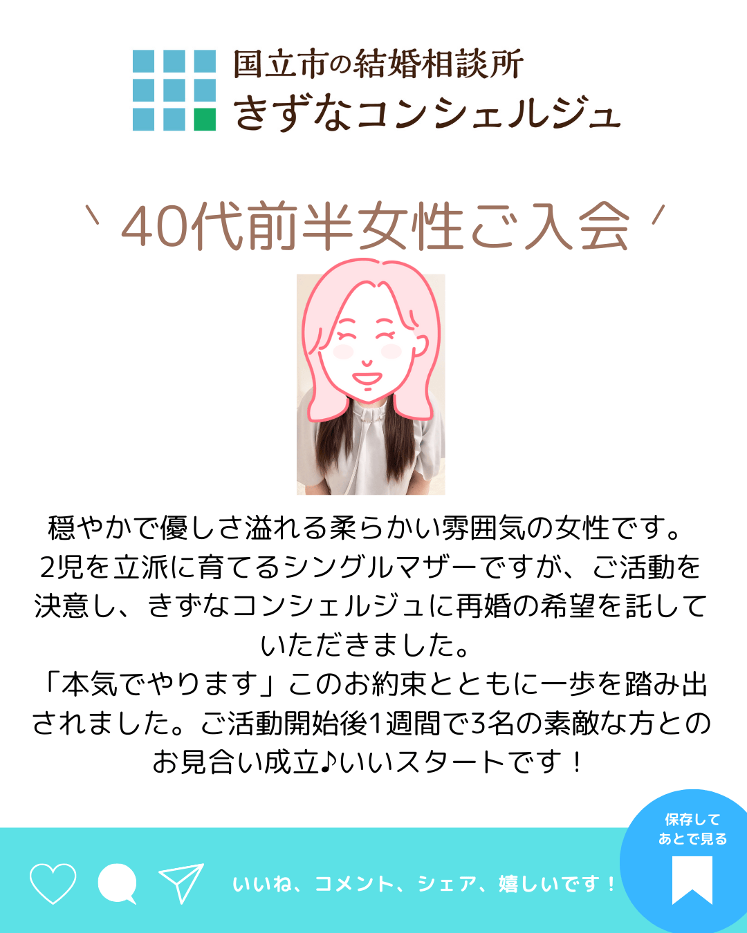 当相談所ではカウンセラーも離婚経験があり、40代での再婚を果たしております。初婚の方とは異なる入念な準備とご支援が必要であるため、当相談所では「再婚者限定プラン」を設けております。また、シングルマザー/ファザーの方もご支援させていただきますので、まずは「無料相談」の席で、ご希望やご状況などをお聞かせいただけますと幸いです。